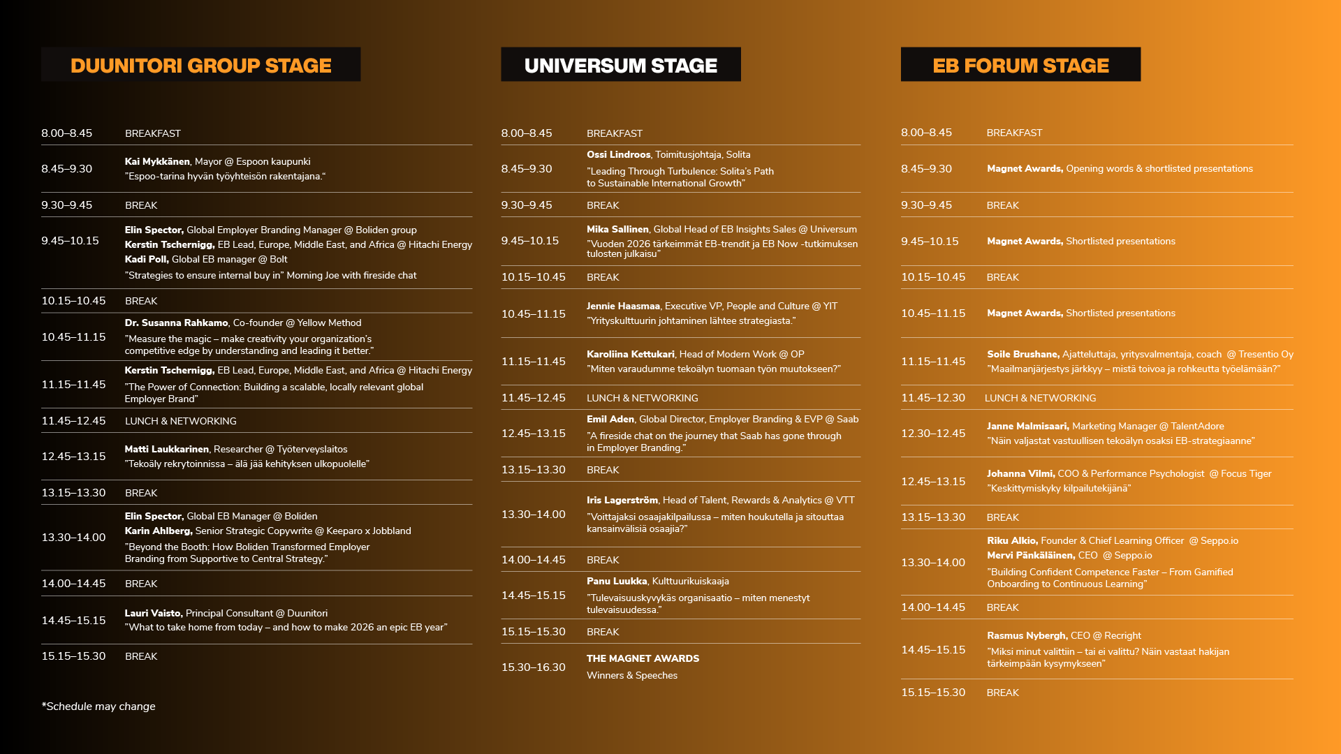 In 2026 we will join forces the Magnet Employer Branding Awardswith. This means that with one ticket you get access to the entire EB Forumin the program as well as the Magnet Awards content and gala.